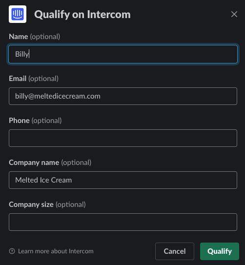 You can also do several other things in this new conversation channel. You can add a note, add team members to the conversation, qualify a lead, or close the conversation all with Slack commands.